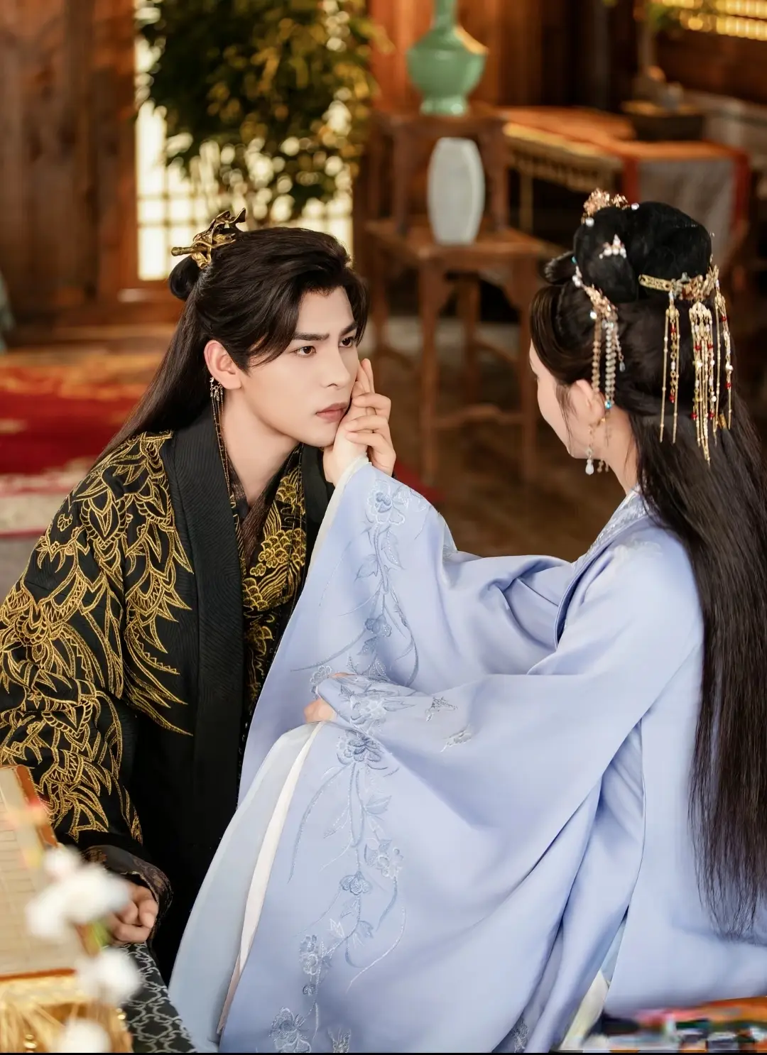 “双向救赎”的内核更是被玩出了新高度,不是单方面的拯救,而是两个破碎灵魂的互相治愈。沈若惜以为自己是在利用萧烬瑜的权势复仇,却没发现这个病弱太子早已看穿她的伪装,知道她故作坚强下的脆弱,甘愿陪她翻覆乾坤,用偏执的深情治愈她前世的创伤;而萧烬瑜看似是掌控一切的强者,实则背负着皇室纷争的孤独、身中剧毒的痛苦,还有前世未能护住她的遗憾,沈若惜的出现,像一道光照亮了他灰暗的世界,让他冰冷的内心有了牵挂和软肋。前世的错过与遗憾,今生的相守与陪伴,这种“你为我踏破红尘,我为你卸下伪装”的感情,远比工业糖精更戳人。就像剧中最动人的一幕,沈若惜在深夜独自垂泪,萧烬瑜默默坐在她身边,没有多余的安慰,只是轻轻握住她的手,用自己的体温温暖她,眼底翻涌的深情藏都藏不住——这种克制中的汹涌,正是成年人爱情里最动人的拉扯,不用多说,却早已胜过千言万语。